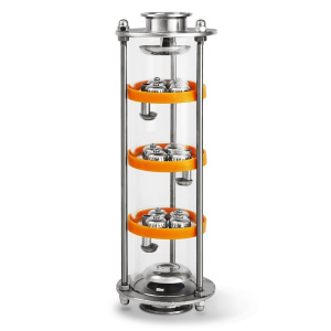 Тарельчатая, колпачковая или ситчатая колонна, чего греха таить, выглядят очень красиво. За процессом перегонки наблюдать одно удовольствие, столько тарелочек внутри, всё как на экскурсии.